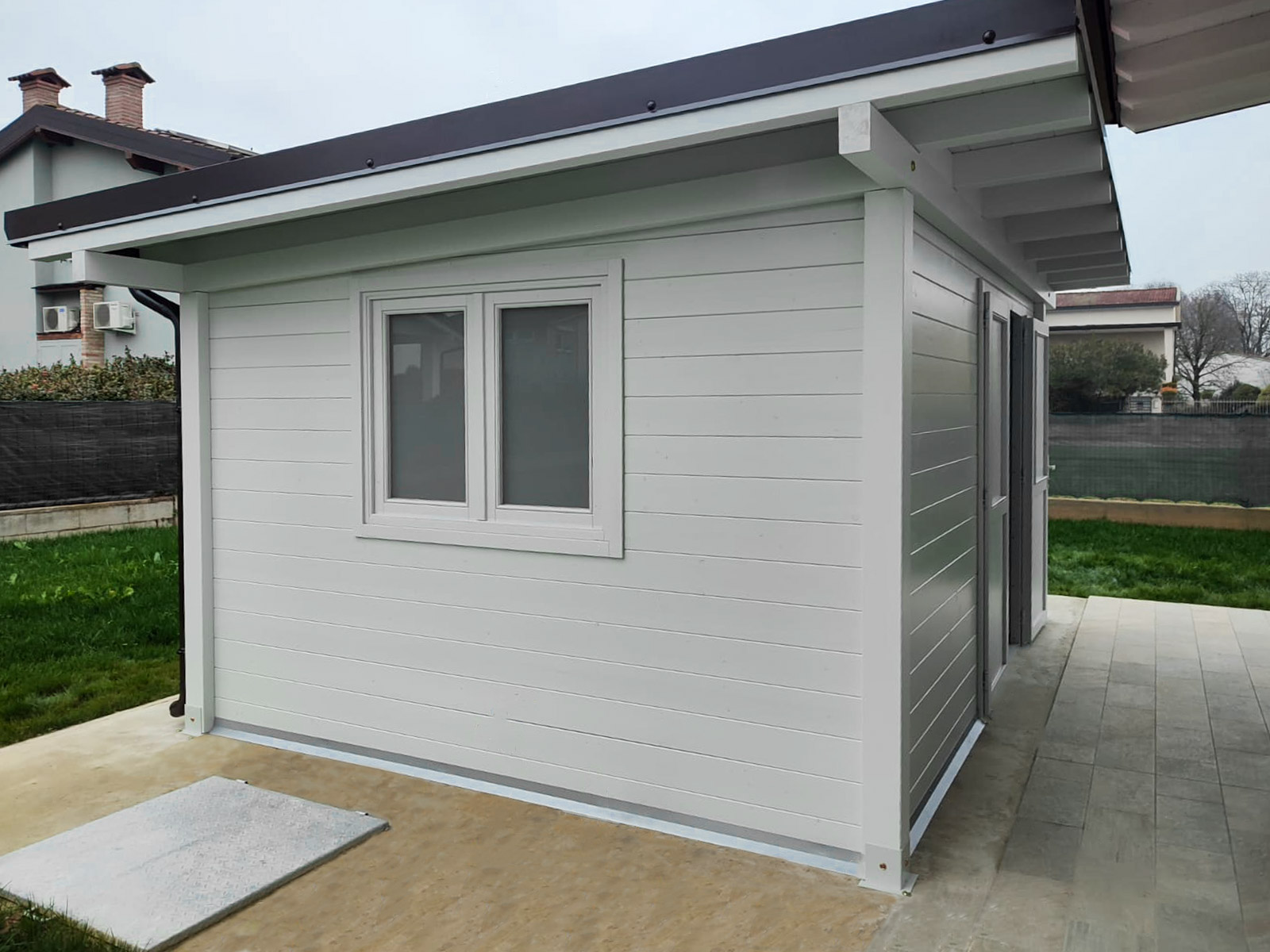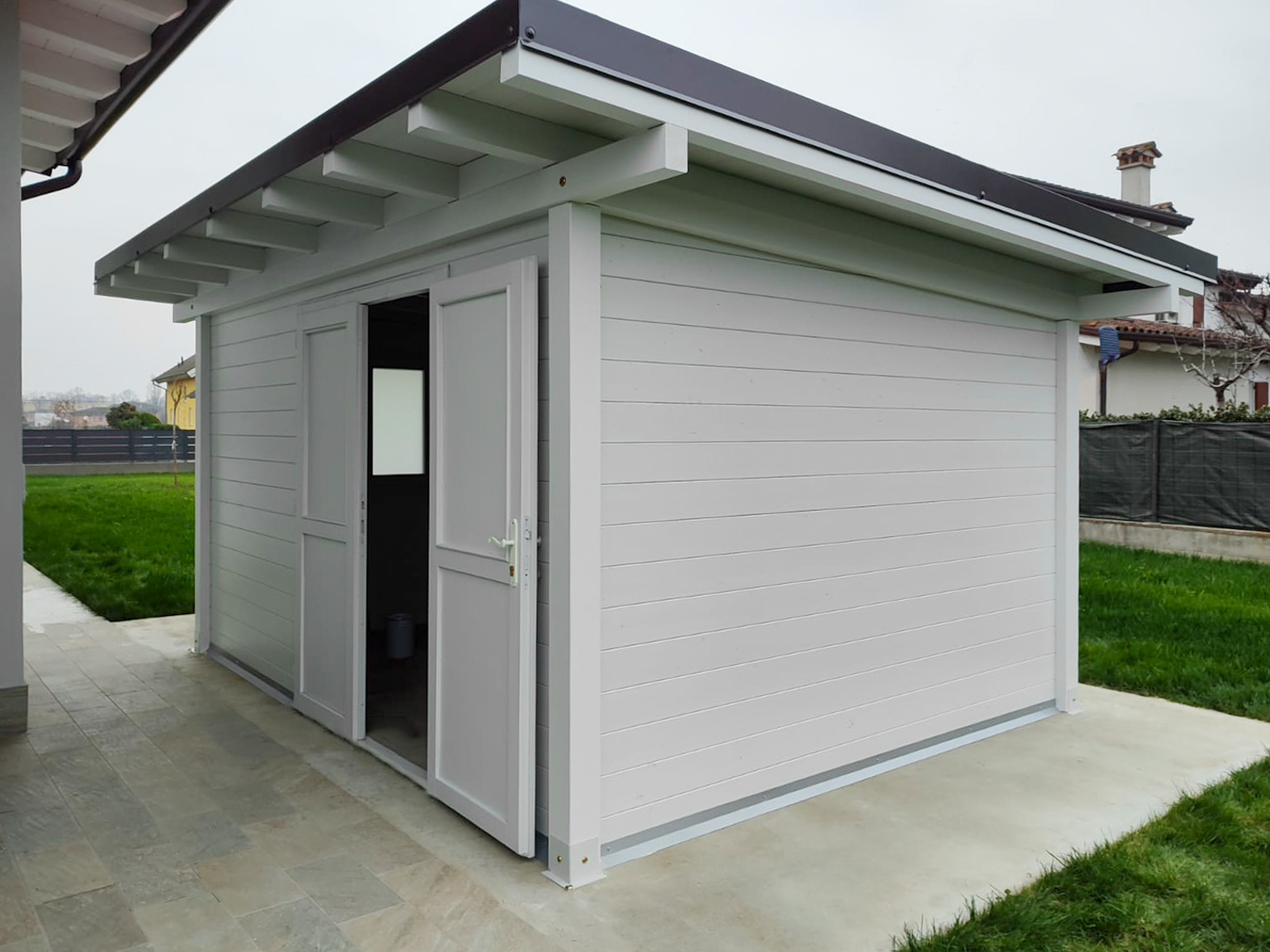 Casetta in legno monofalda progettata come spazio di deposito e magazzino a servizio dell’abitazione.