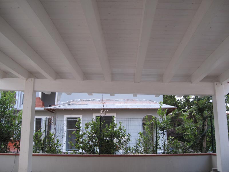 Pergola in legno addossata autoportante con copertura minimale