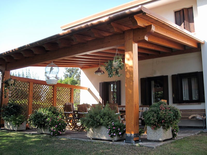 Pergola in legno con copertura in Coppo di Francia e chiusura laterale frangivista