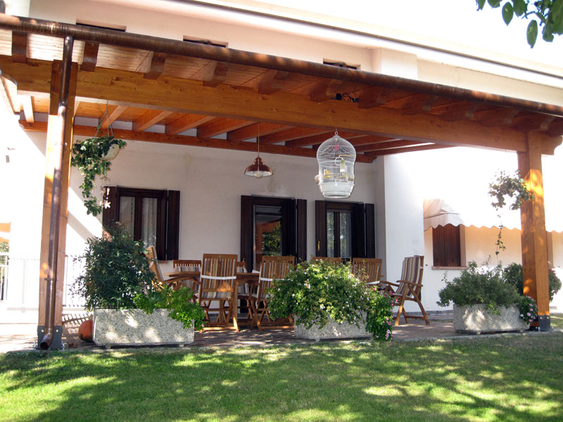 Una soluzione perfetta per chi desidera uno spazio esterno protetto ma aperto, con un’estetica coerente con l’architettura tradizionale.