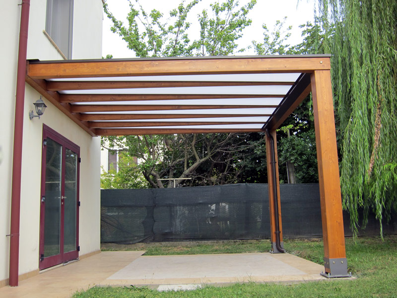 Questa configurazione è particolarmente indicata per realizzare una pergola moderna per piccoli spazi, creando una zona protetta senza appesantire visivamente l’ambiente.