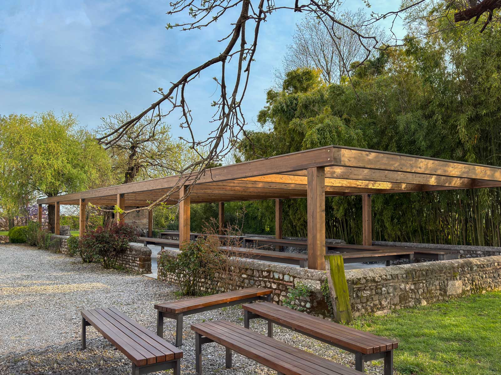 In questo progetto abbiamo realizzato una pompeiana studiata per integrarsi perfettamente con il contesto.