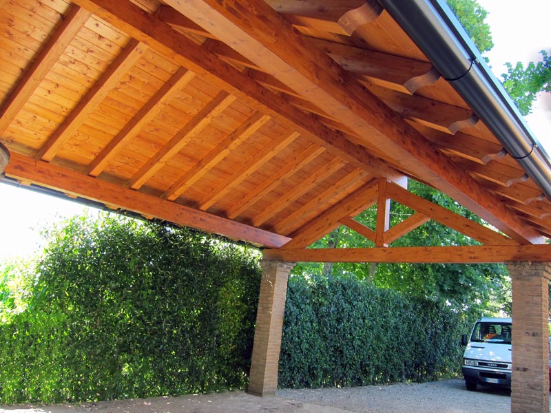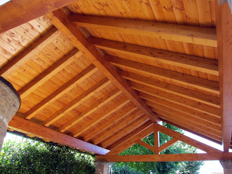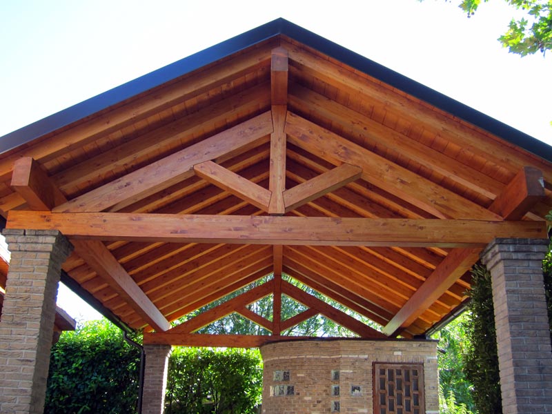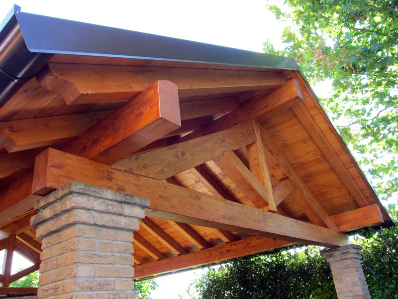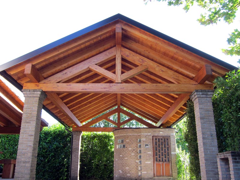 Per la copertura è stata scelta la tegola canadese, indicata quando si desidera un manto leggero, esteticamente piacevole e dal buon comportamento nel tempo. Nel complesso si tratta di una soluzione ideale come spazio conviviale esterno, con un’identità estetica ben definita